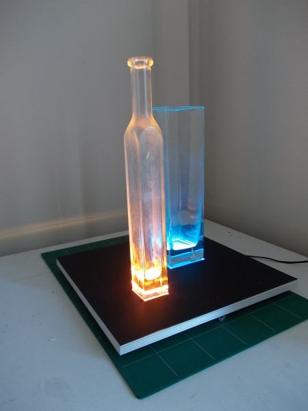 This lighting test came from a conversation about how best to highlight a set of cut-glass decanters. Spotlighting glass is rarely a good idea - it splashes light around the place too much (either that or you spend an outrageous amount of money on the technology).